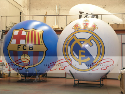 One more year, the media production company Sugema has commissioned us the production of two helium balls of 3 meters in diameter with digital printing on both sides of the shields of Real Madrid and F.C.Barcelona, which will be exhibited, as in previous years, before the match.